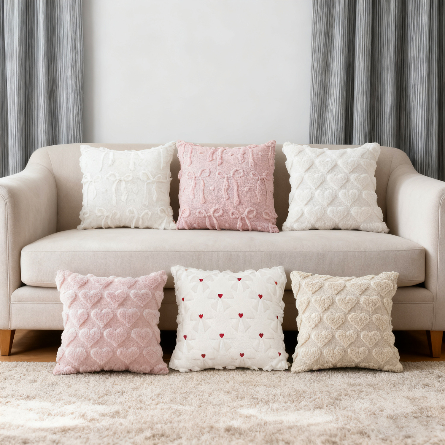 跨境亚马逊情人节蝴蝶结爱心抱枕套沙发床头靠垫抱枕靠枕现货批发
