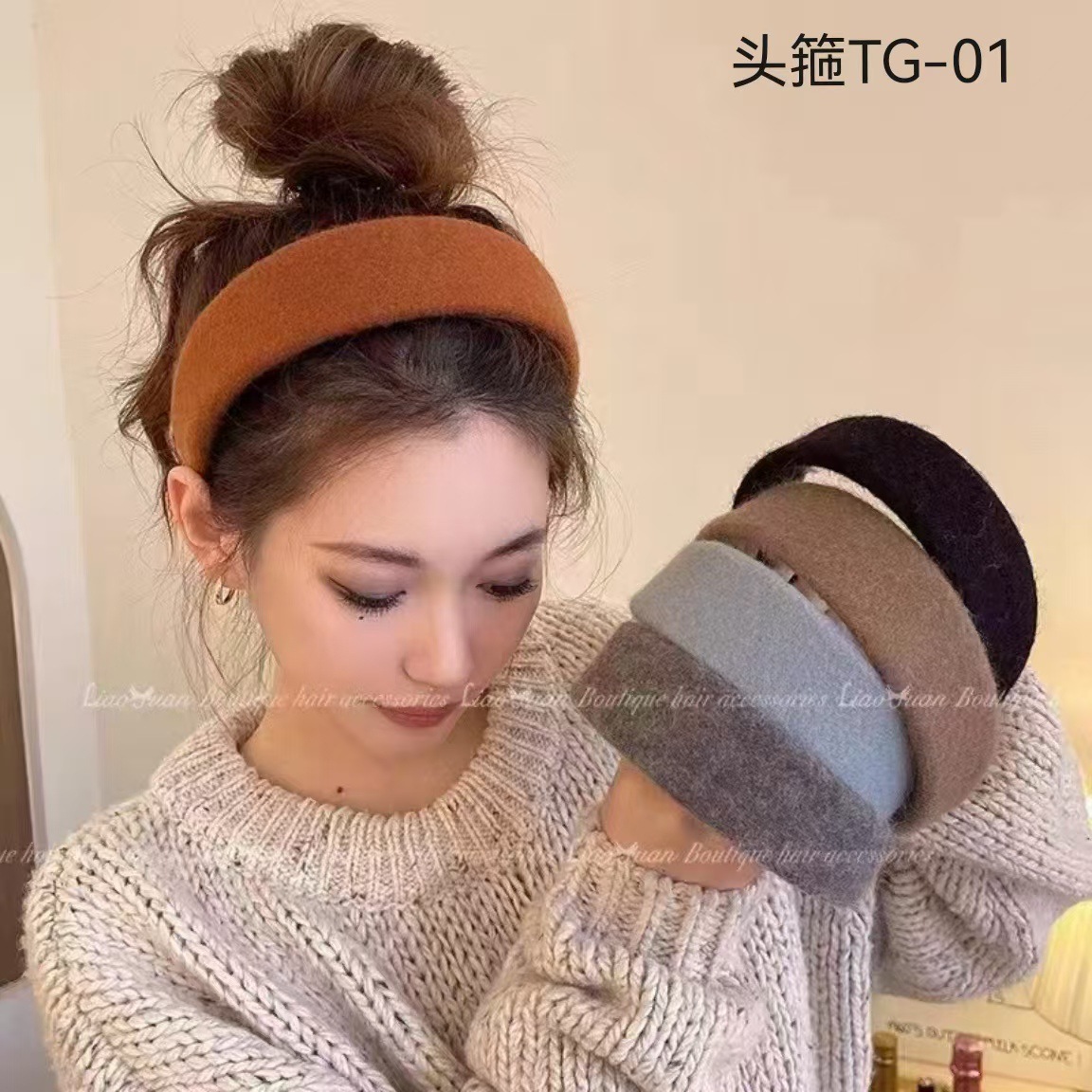 スタイル メイラードスタイル,ソリッドカラーのウールヘッドバンド