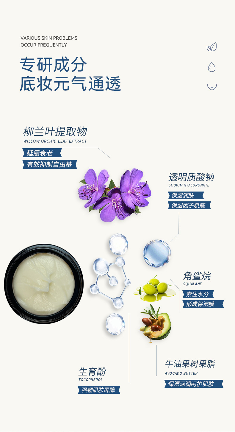 化粧前にクリームを貼ると、カバーオイルが保湿し、毛穴を隠して化粧する前に肌を潤すクリームが長くなります。