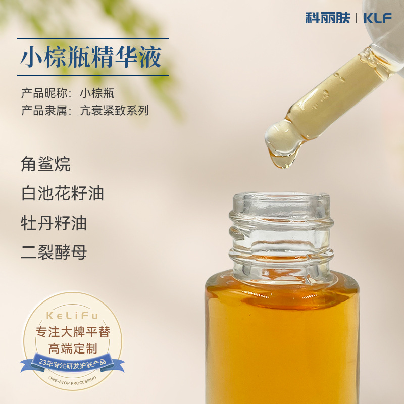 第7世代の小さいブラウンの瓶の精華液は薄くなって、小紋が高くて、しわが落ち着いています。夜更かしして、肌の色の顔の精華液を明るくします。