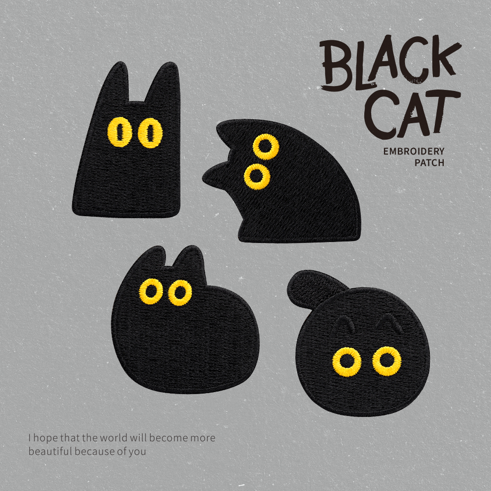 かわいい黒猫刺繍は携帯電話の手帳装飾布を貼ってiPadの自己接着シール服を収納して貼り付ける