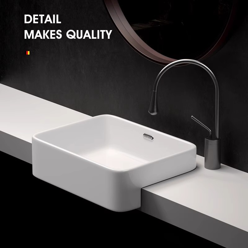 半埋め込み式卓上盆ホテル半掛式台盆小戸型狭いカウンター式浴室角型陶磁器洗面器