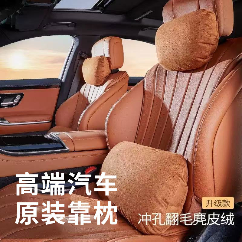 跨境汽车头枕腰靠杜邦生物绒四季通用护颈枕鹿皮绒车载座椅靠枕