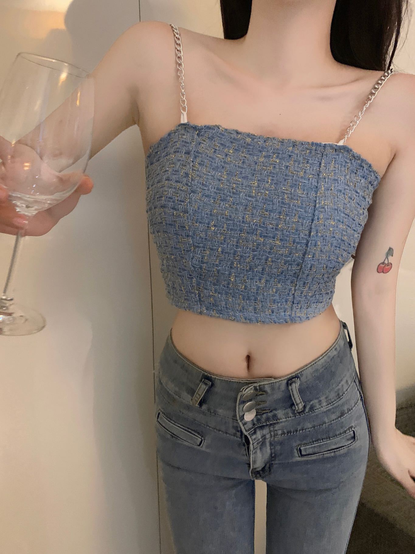 2024新型小香風チェーンストラップベスト女性刺繍格子デザイン感胸パッド付きショートコート
