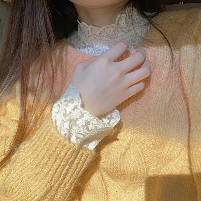 半高领加绒蕾丝打底衫女春季新款保暖内搭小衫毛衣叠穿神器