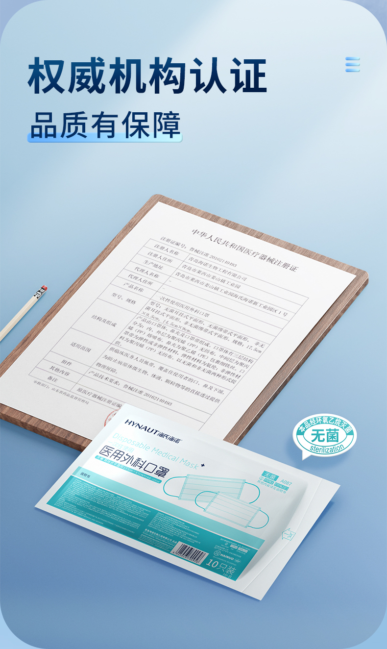 海氏海諾は使い捨て医療用外科マスク50匹を単独で滅菌型医療用外科マスクを装着します。
