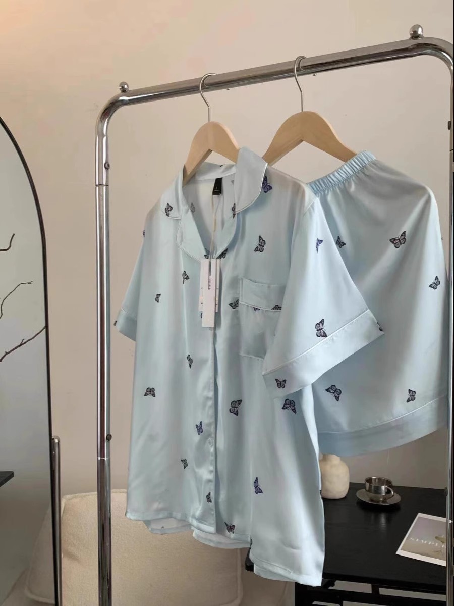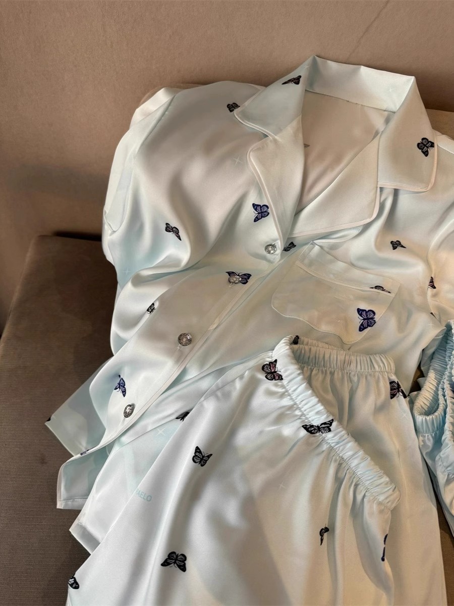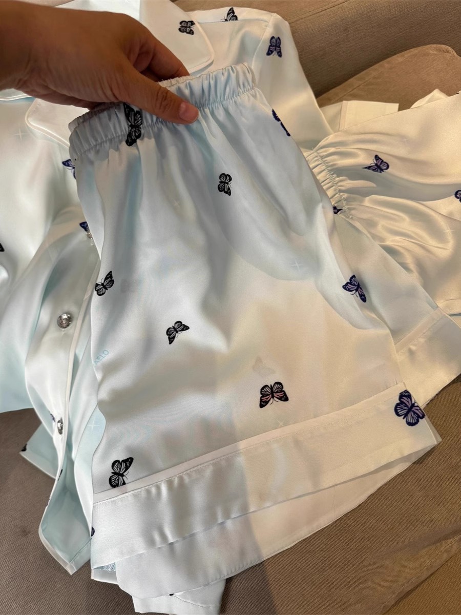 アイスパジャマレディース夏半袖半ズボンセットinsカーディガン高級感クロスボーダールームウェア夏アウター可