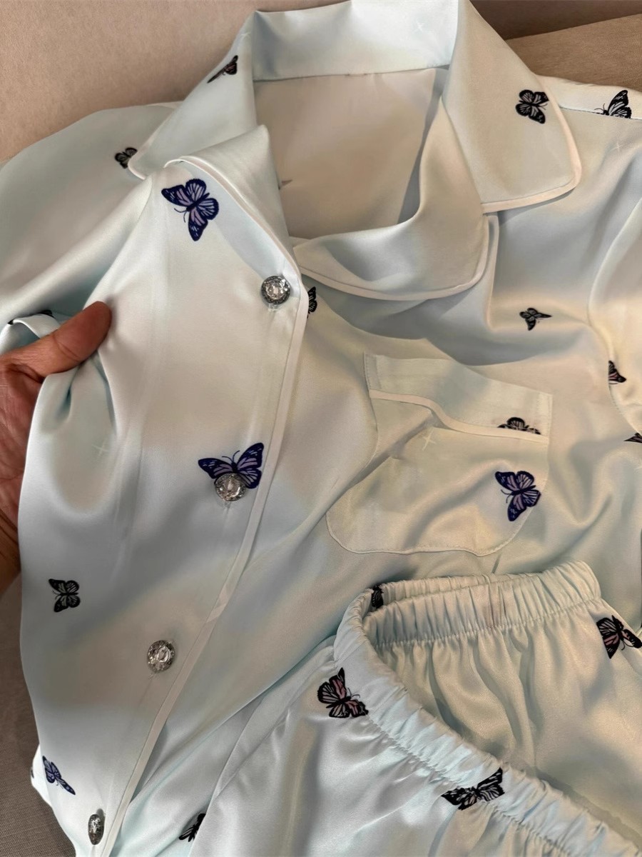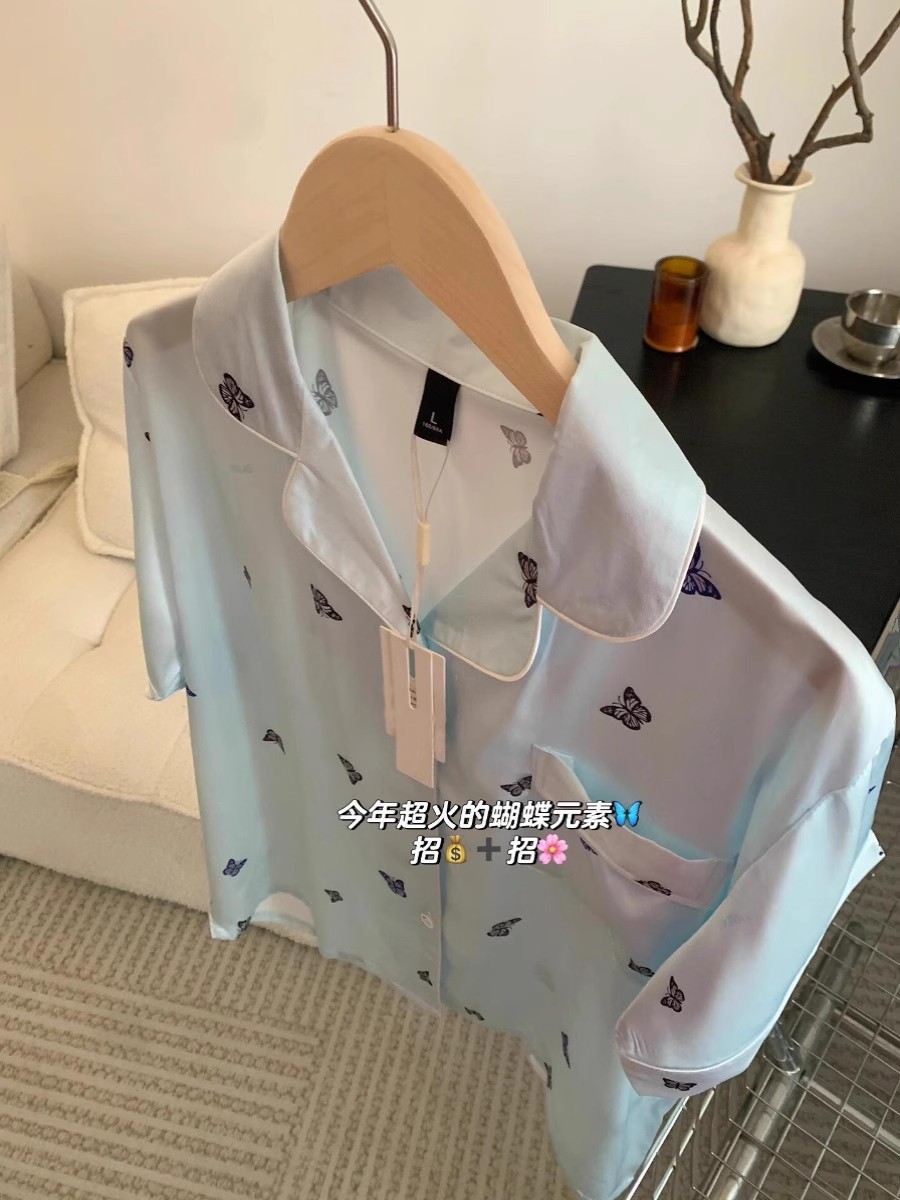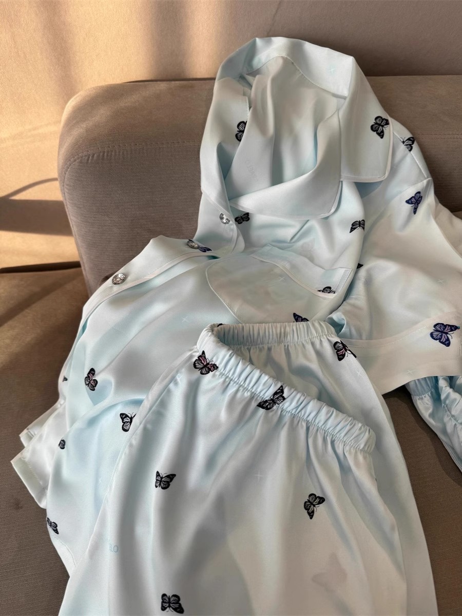アイスパジャマレディース夏半袖半ズボンセットinsカーディガン高級感クロスボーダールームウェア夏アウター可