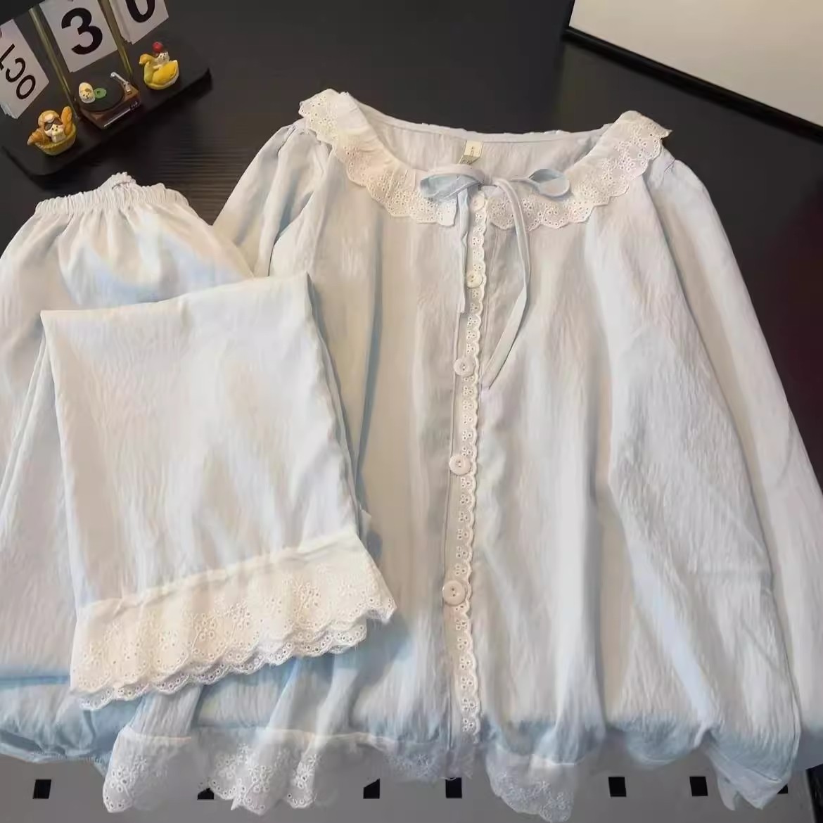 フランス式プリンセスパジャマ女性春秋長袖セット雲綿ガーゼ家庭服甘い高級感春