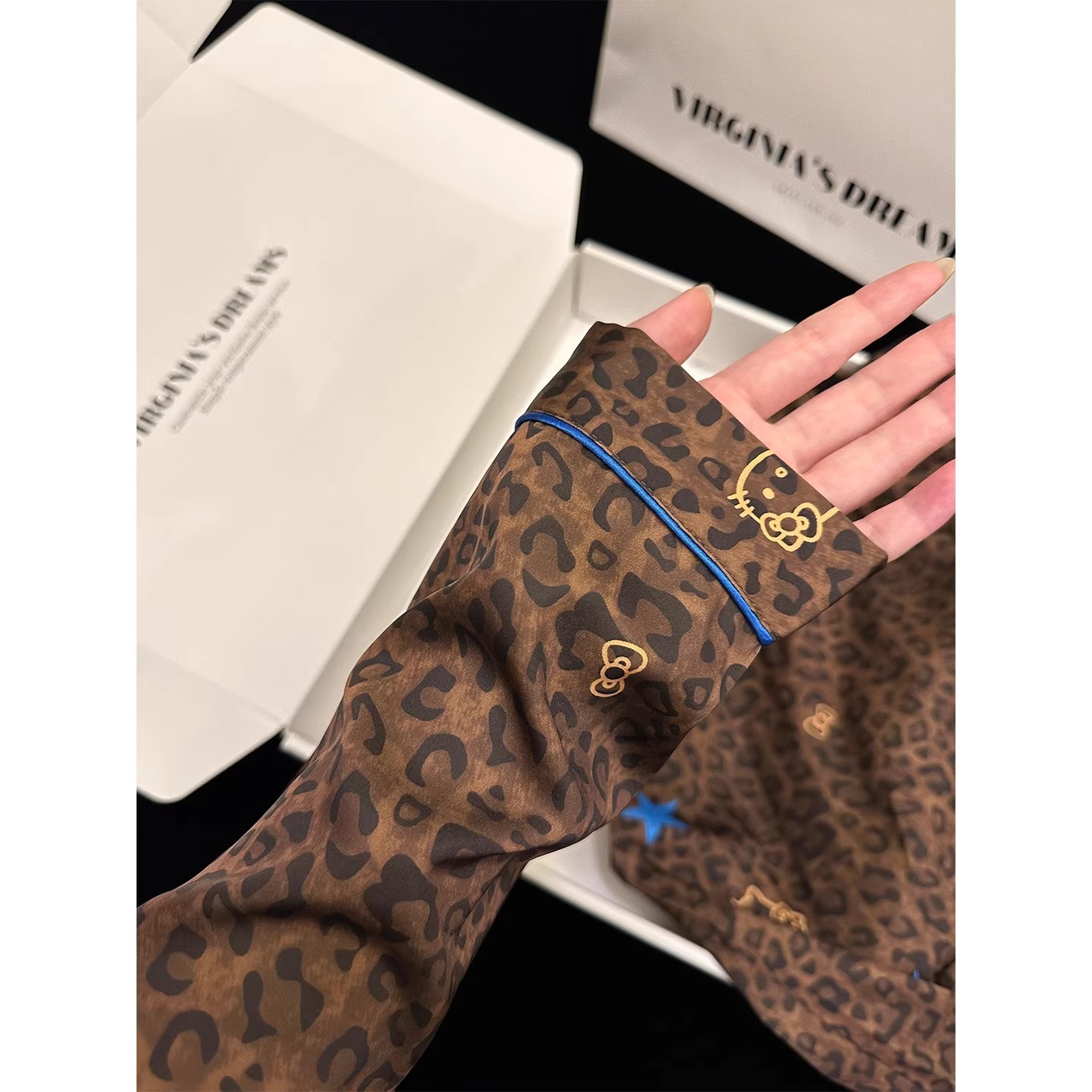冰丝睡衣女春秋季豹纹长袖套装高级感仿真丝跨境家居服夏天可外穿