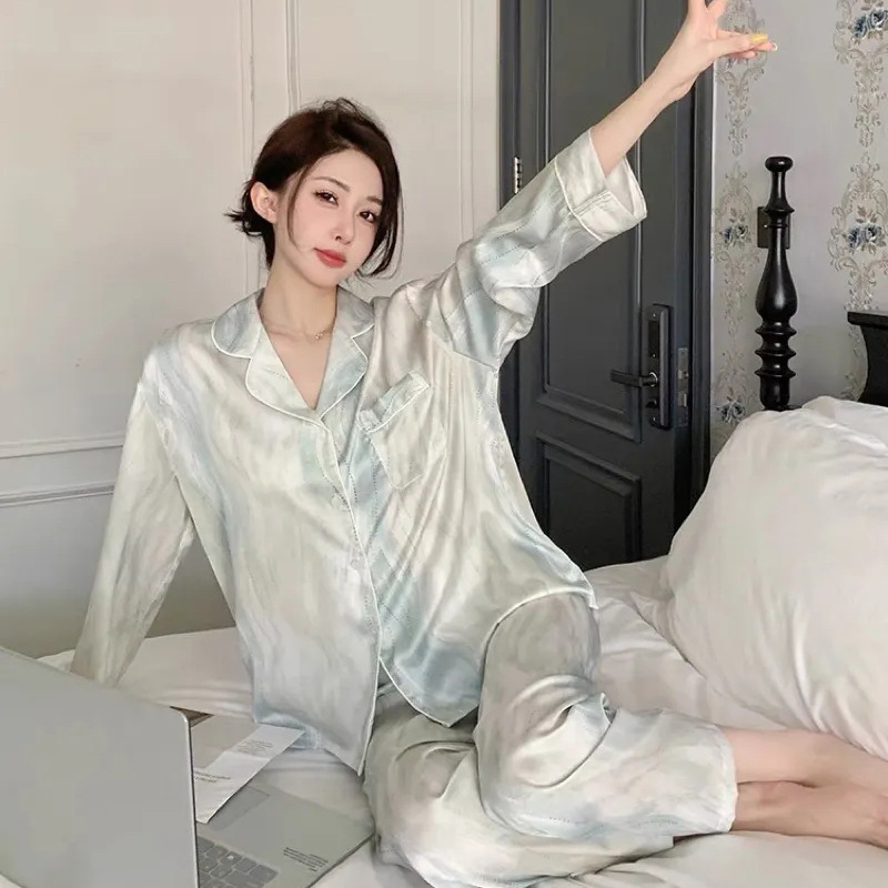氷糸パジャマ女性長袖スーツ春秋学生ゆるいネット紅風高級感ホームウェア夏タイプ外着可