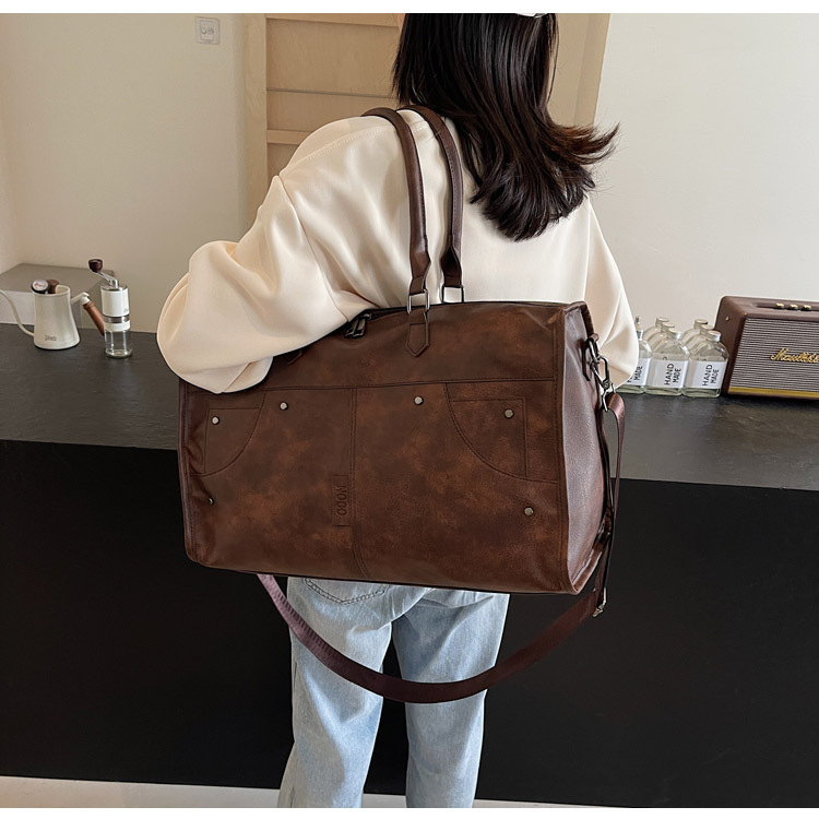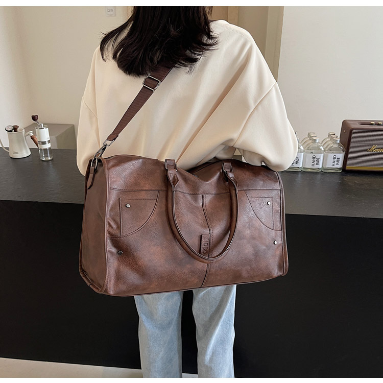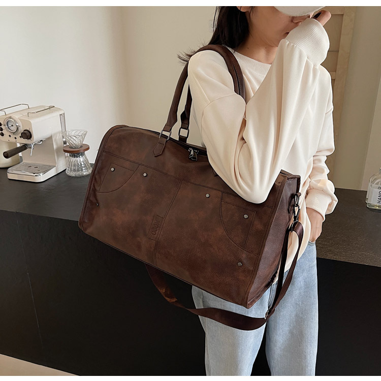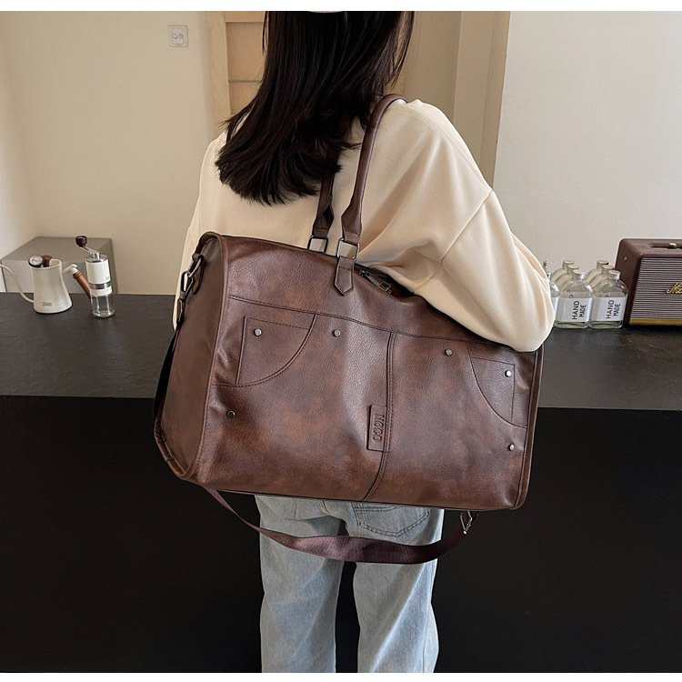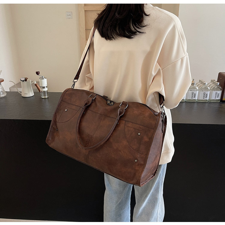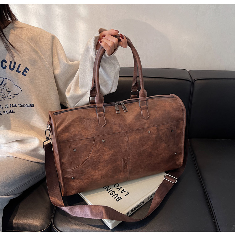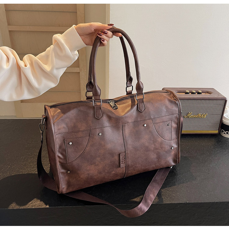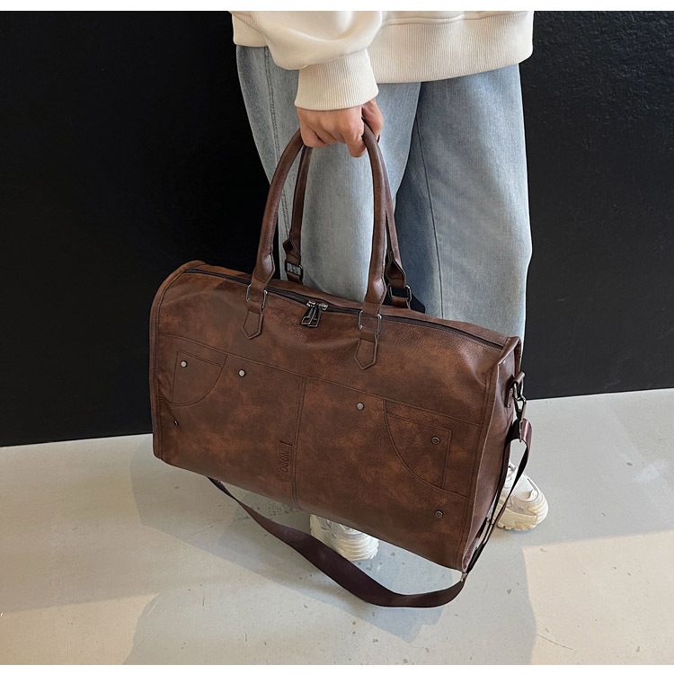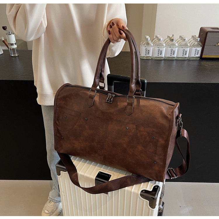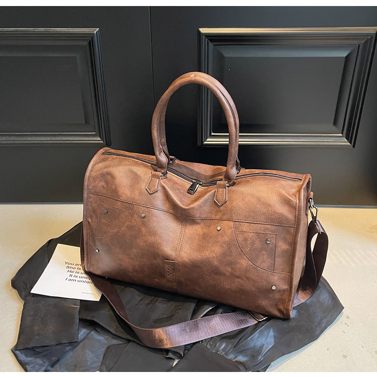 レトロ旅行鞄男大容量出張とキャンプのハンドバッグ飛行機の荷物バッグ女PU皮質スポーツフィットネスバッグ