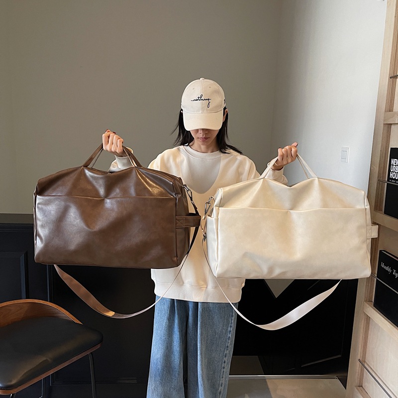 大容量短距離旅行バッグ女性2025新型PUシンプル運動フィットネスバッグ高級感純色バッグ