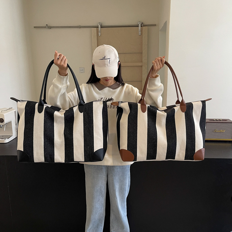 国境を越えたバッグの女性2024の新しいバッグ潮ファッションはギョーザを手に入れて大容量の縞模様の短距離旅行バッグを包む