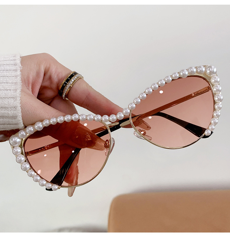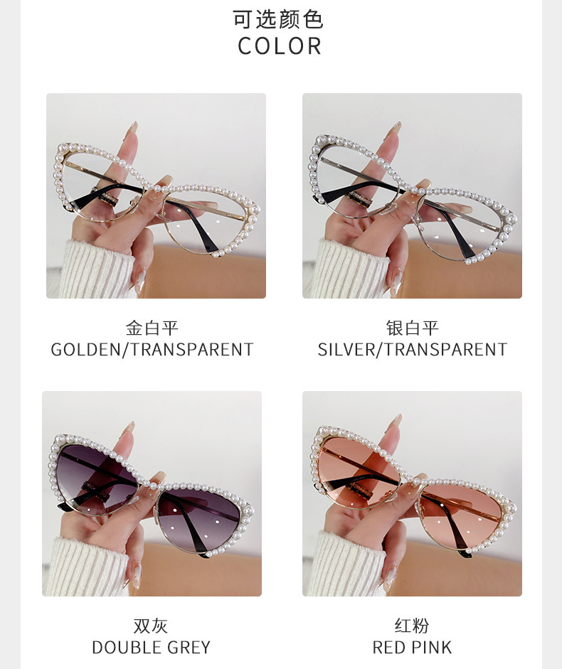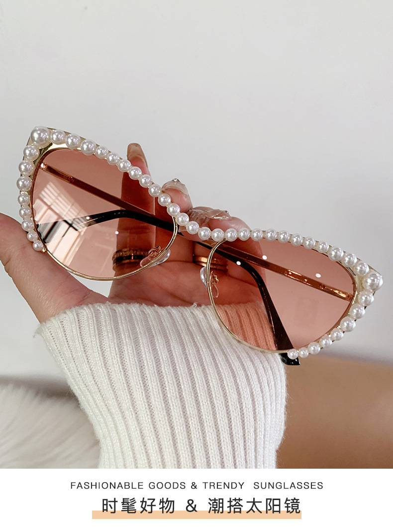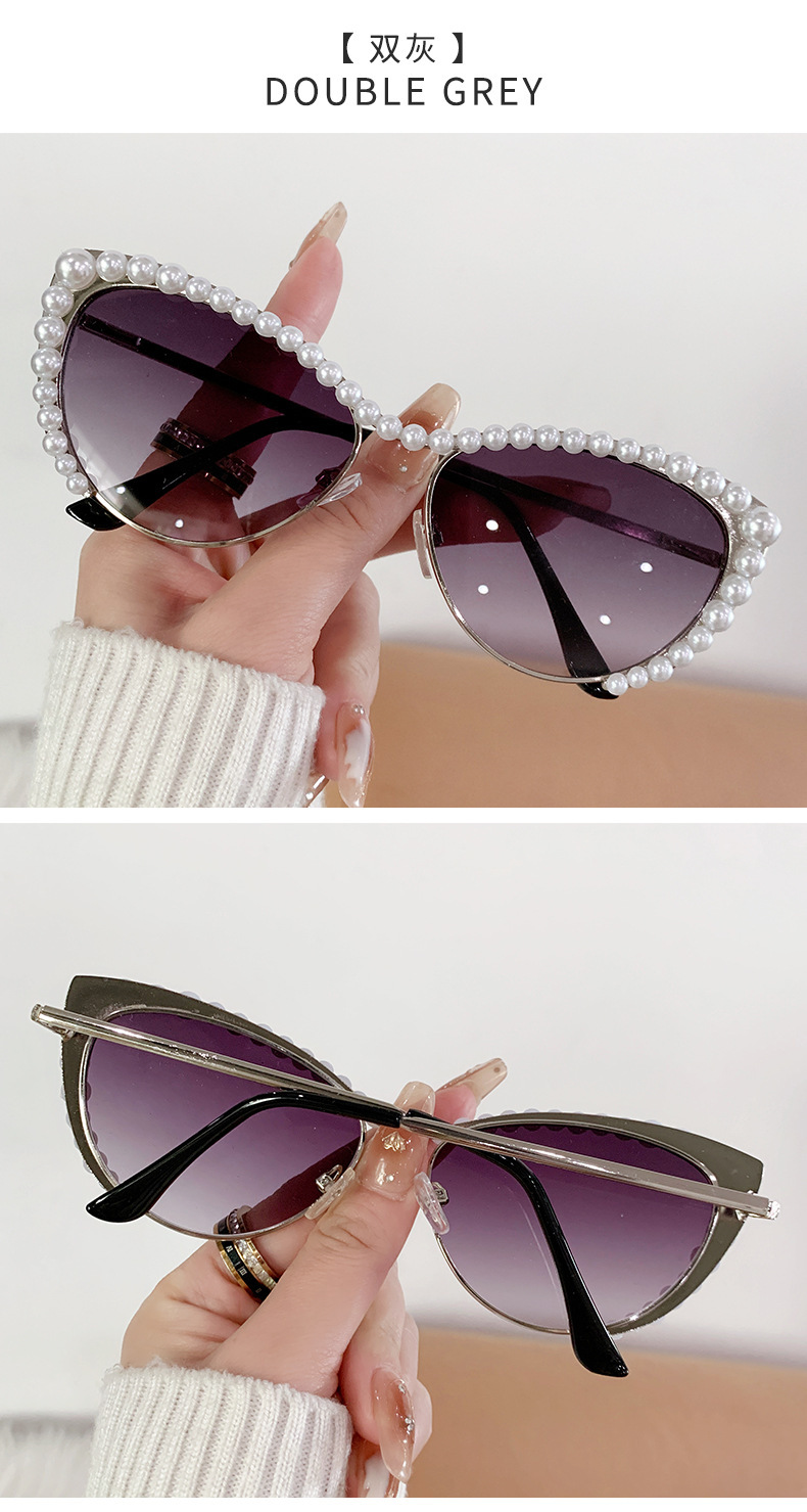 国境を越えた新型金属猫眼サングラス欧米眼鏡豪華な真珠サングラス高級感眼鏡女