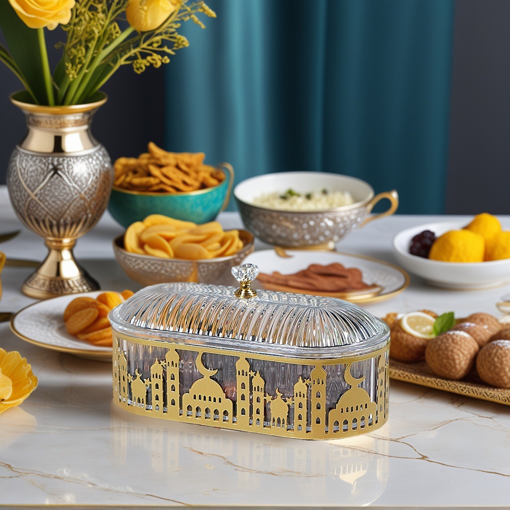 跨境新款阿拉伯节庆家居餐桌装饰托盘零食糖果罐收纳盒工艺品摆件