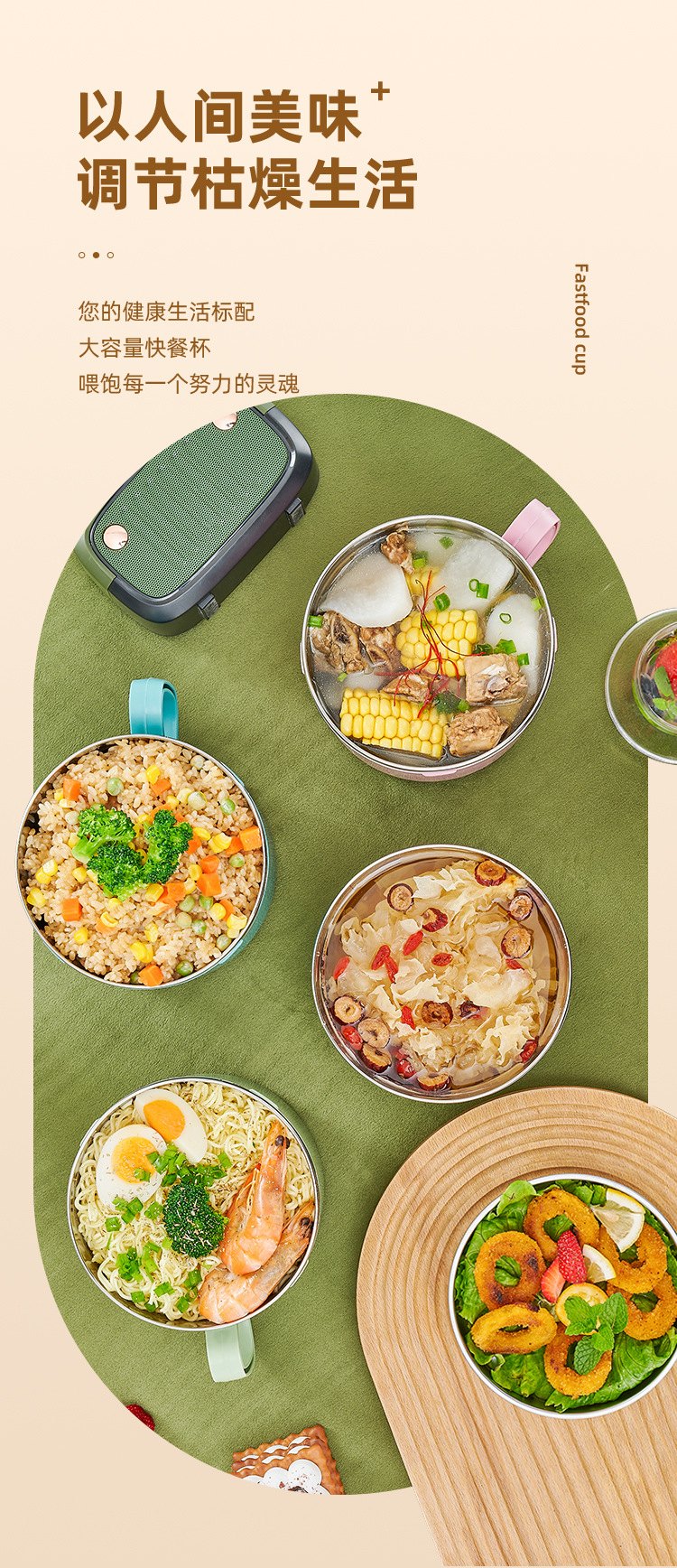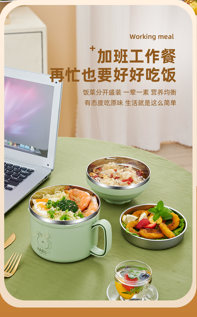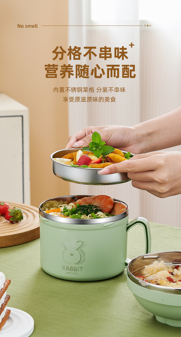 不锈钢大容量上班族快餐杯卡通学生多用分格双层隔热保温饭盒餐盒
