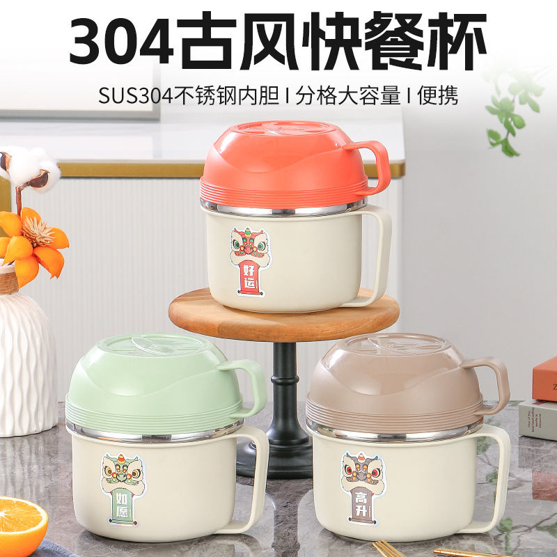 学生用ステンレス製蓋付き弁当箱、インスタントラーメンボウル、大容量携帯用ファーストフードボウル、インスタントラーメン神器、カスタマイズ可能