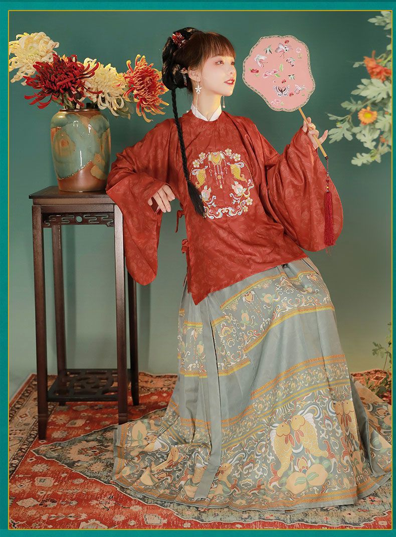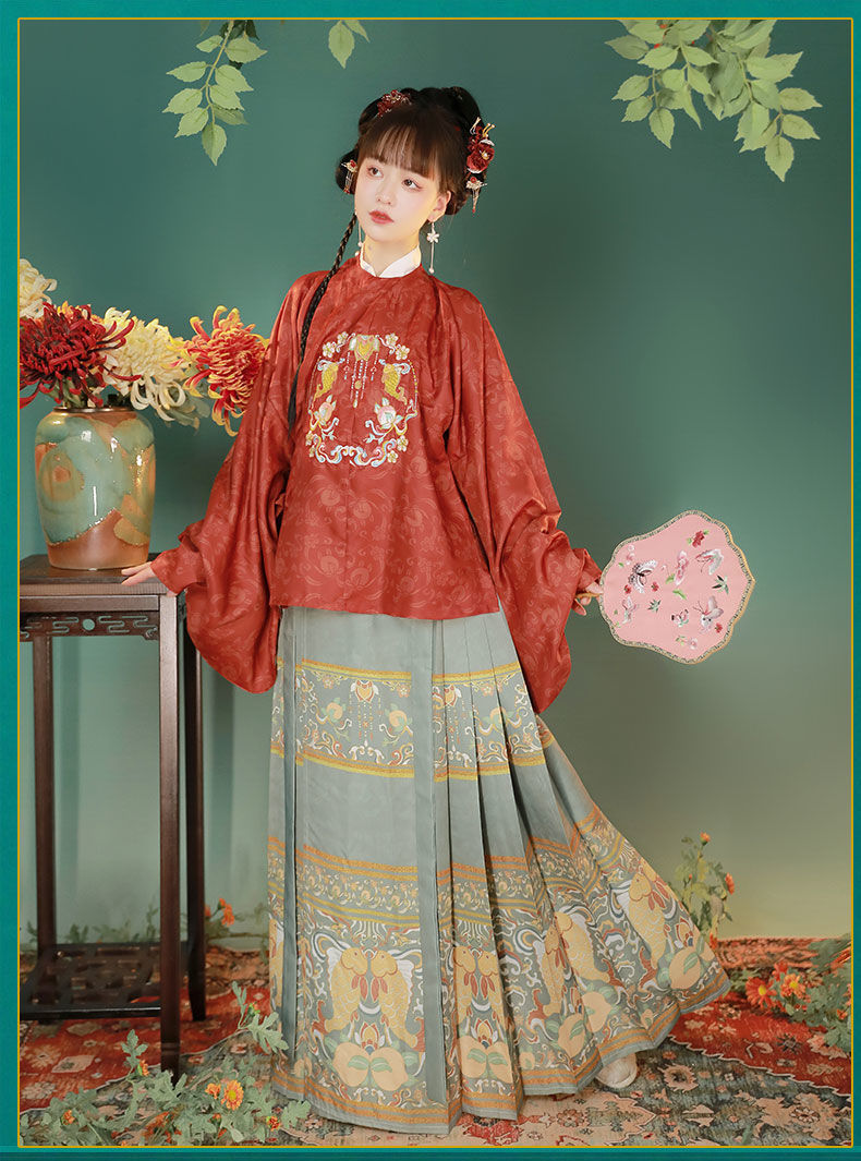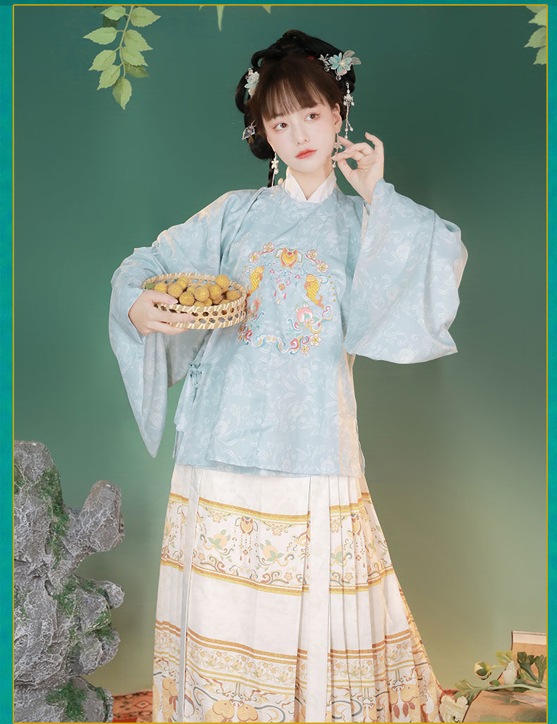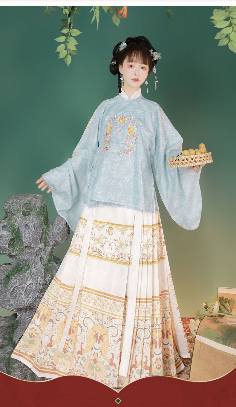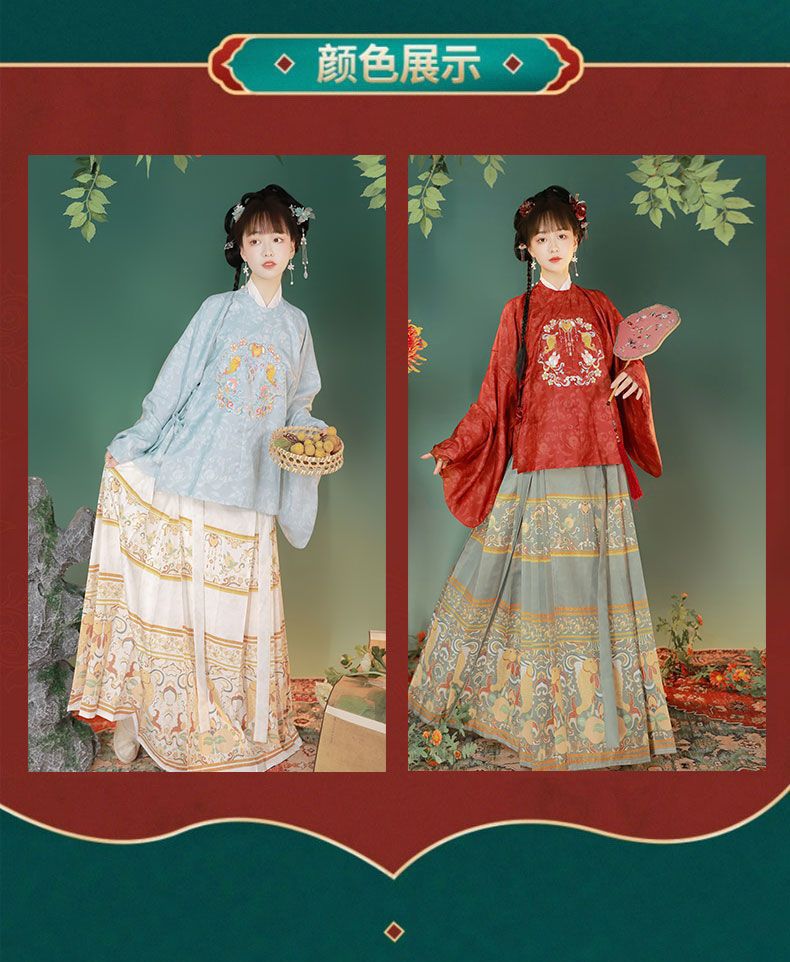 規格品のオリジナルの漢服の女性の明製の方の襟は上着の馬のスカートを掛けます。