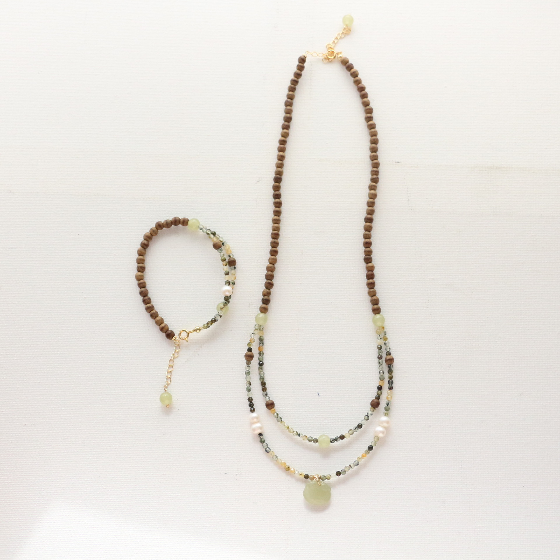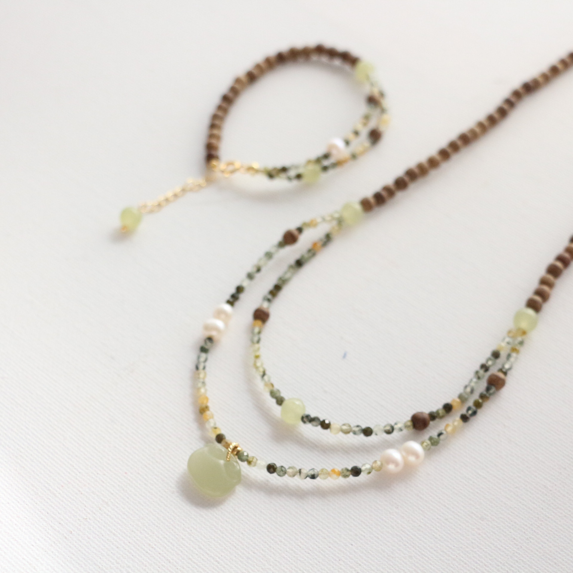 海燕サイダー色ブルー方解石天然石ネックレスブレスレット二重太陽石ビーズアクセサリー女の子