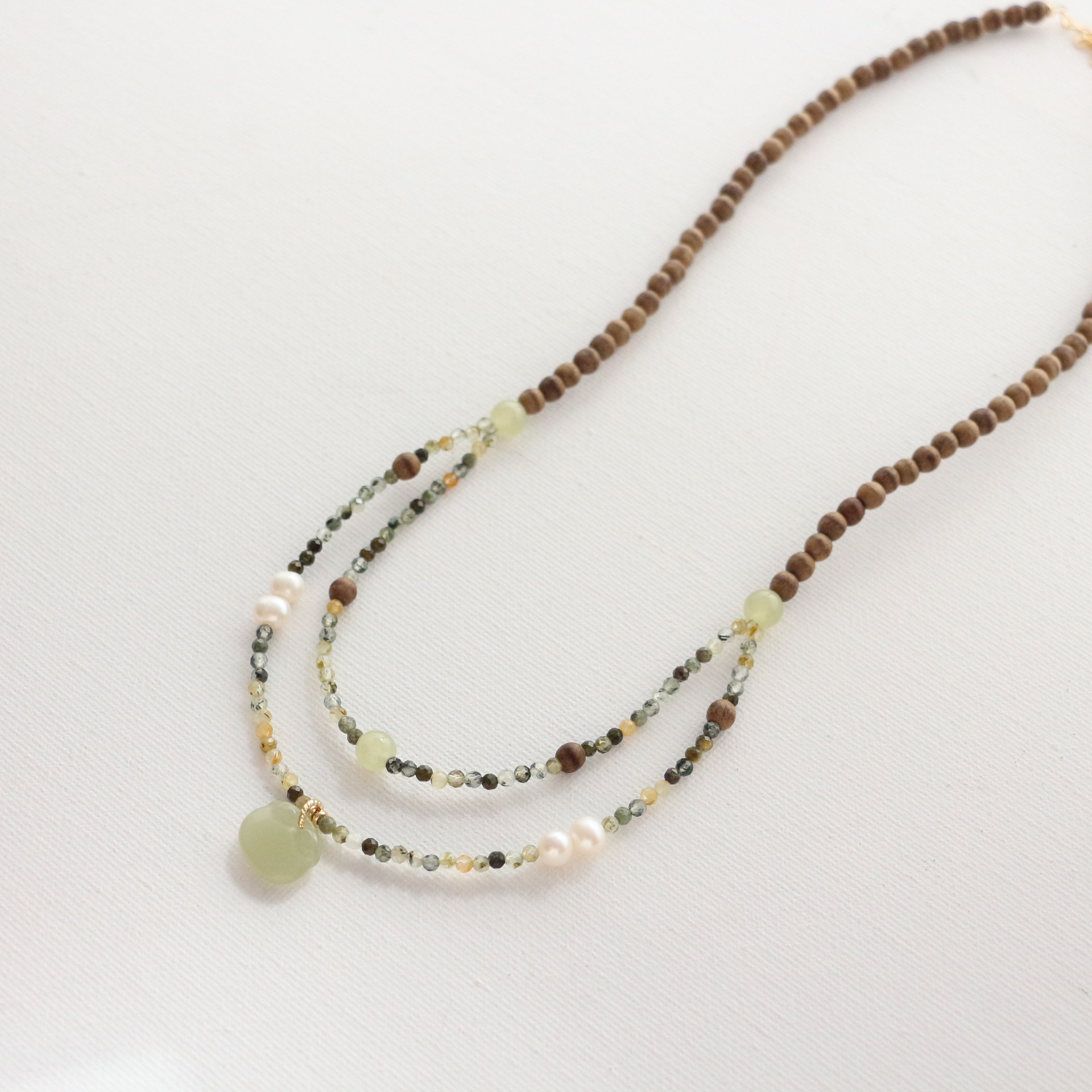 水墨色天然天河石グラデーション工芸再生花びら珠創意ビーズネックレス銅包18k金