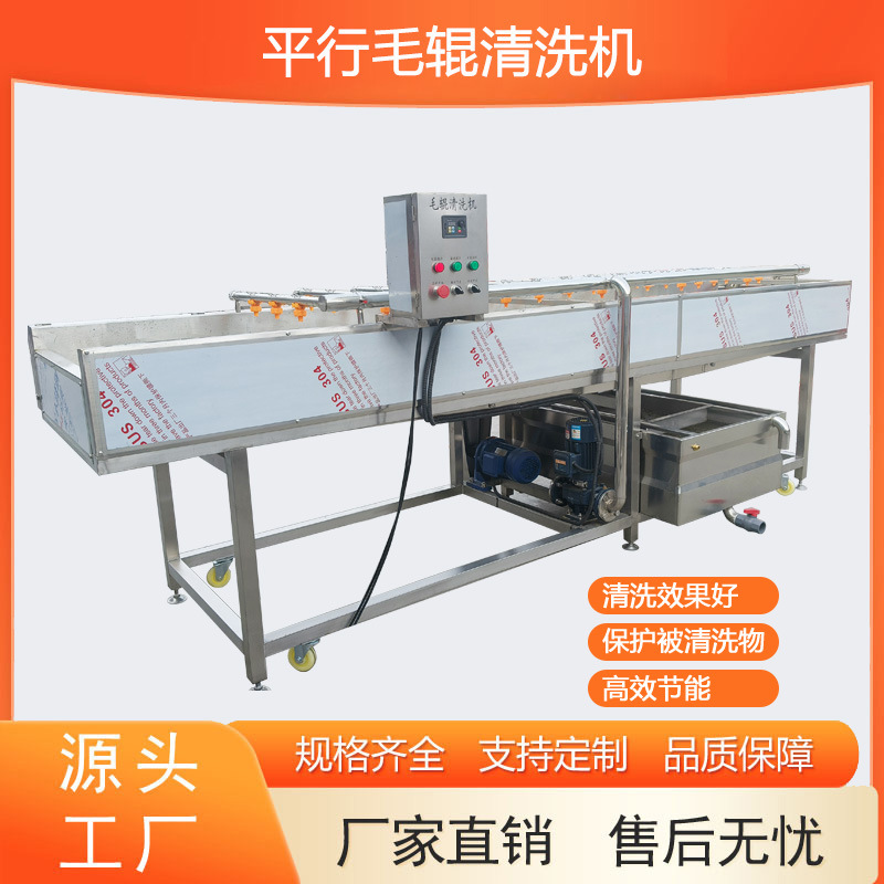 果物、根菜、海産物、漢方薬原料を洗浄する業務用大型平行毛ローラー洗浄機 多機能