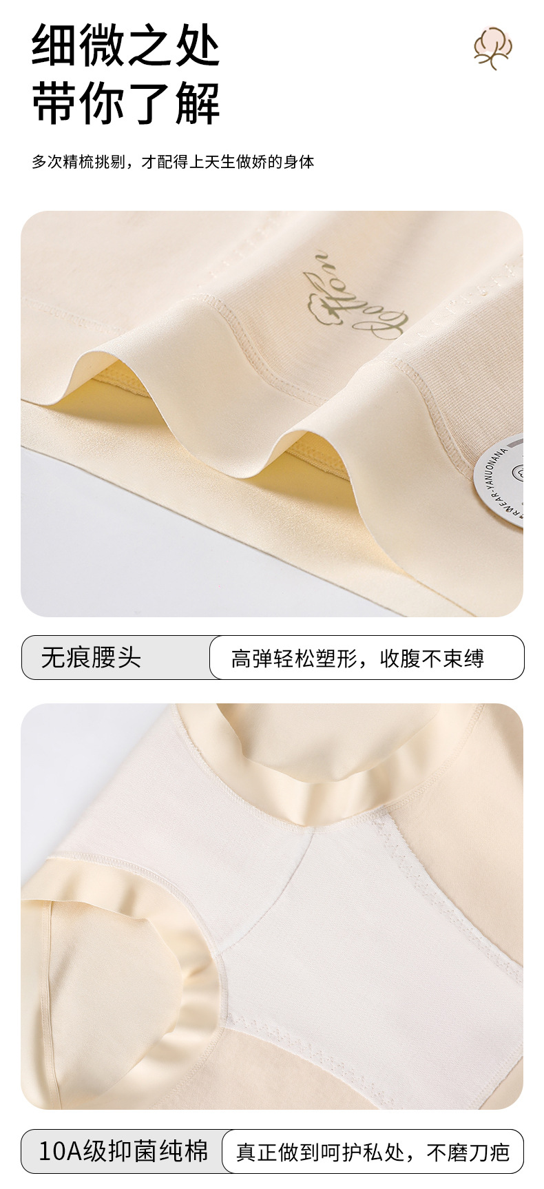 60本新疆綿7a抗菌女性純綿下着a類赤ちゃん純綿底股中腰シンプル女性下着
