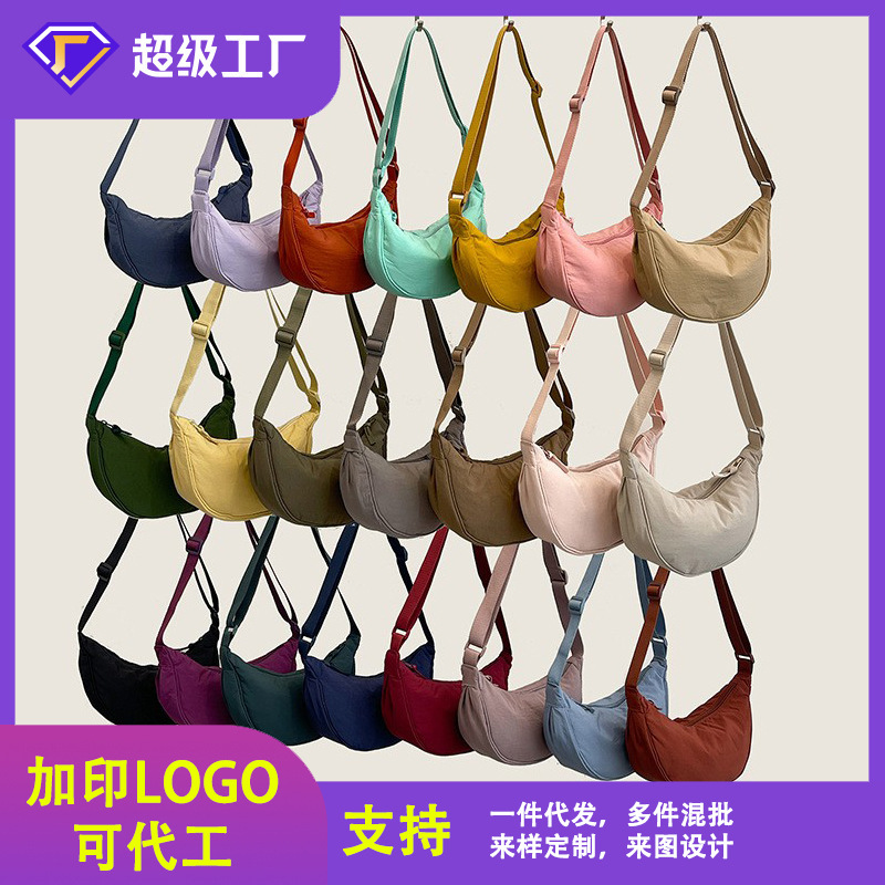 バッグレディース2025春新作ナイロン斜め掛けバッグ小衆高級感緩み感脇の下餃子バッグ三日月バッグ