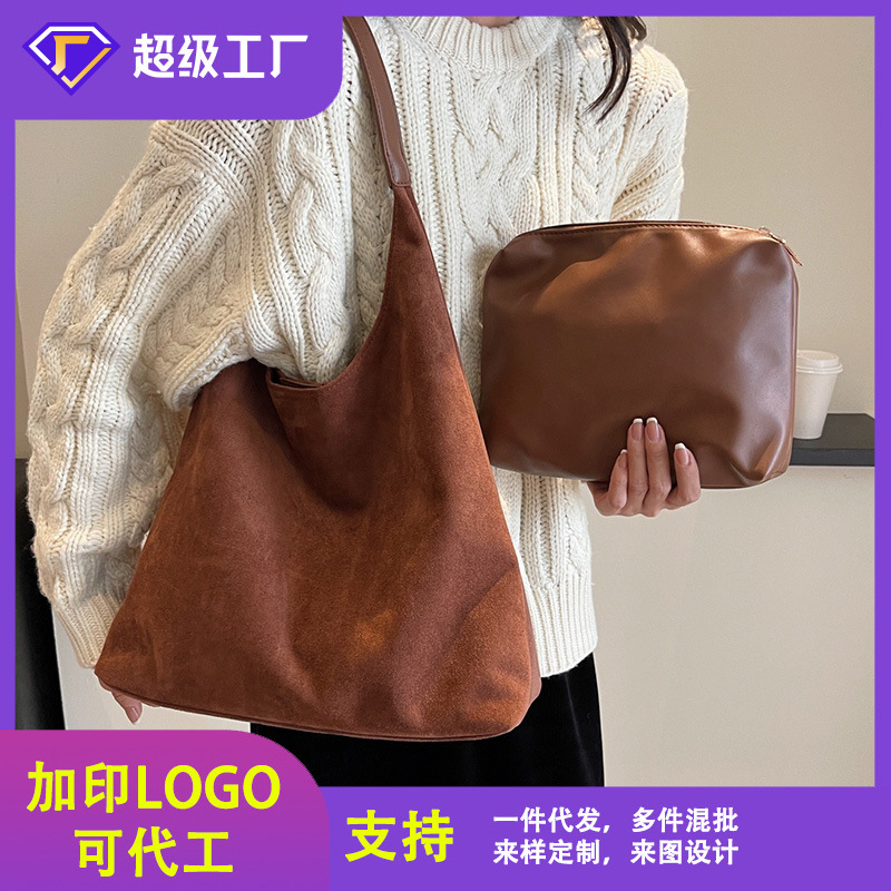 クロスボーダーレトロショルダーバッグレディーススエードつや消しトートバッグ大容量通勤ハイエンド脇の下ショルダーバッグ