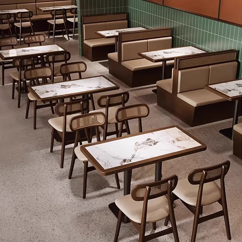 籐無垢材レストランコーヒーホットポットバーベキューケータリングレストラン壁面ソファラーメンテーブルと椅子の組み合わせ商業用