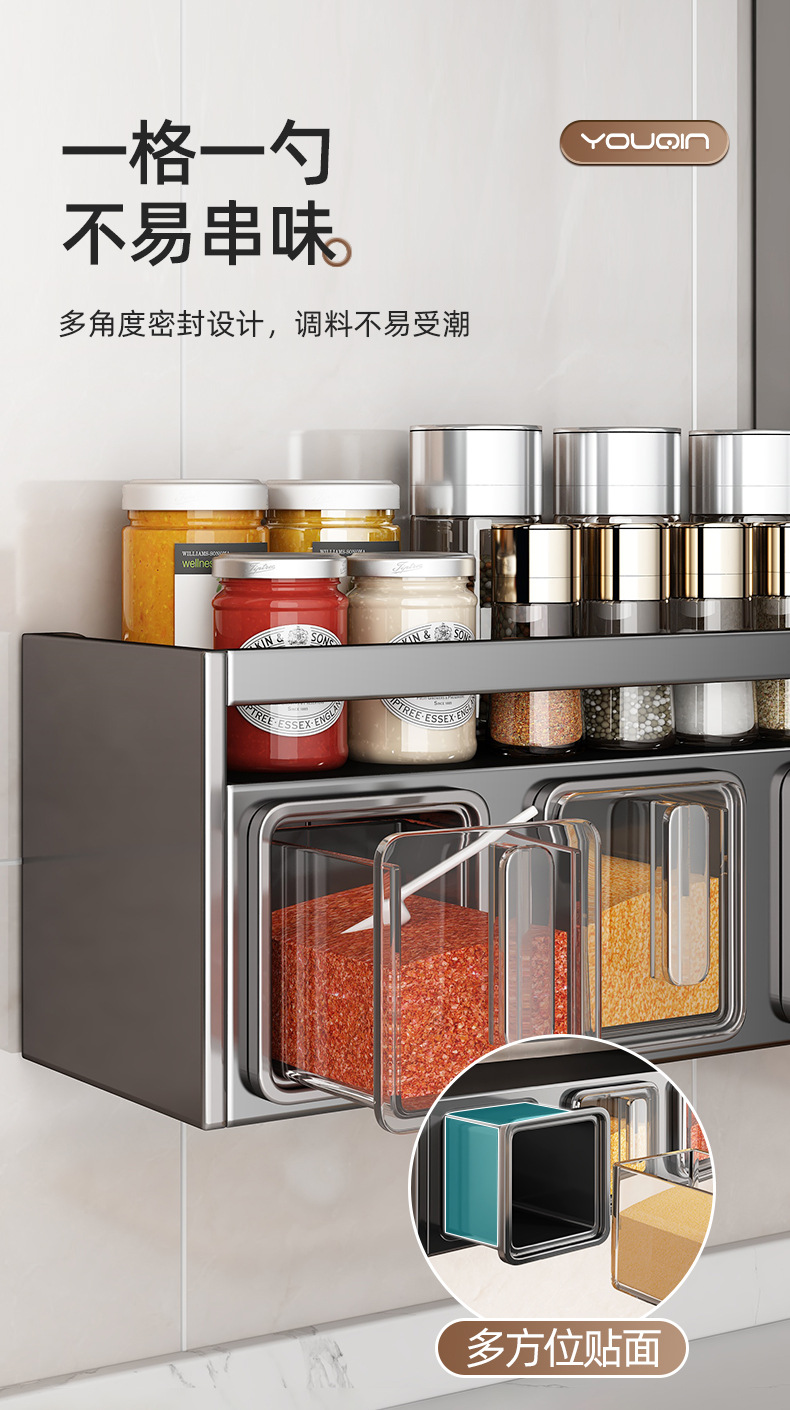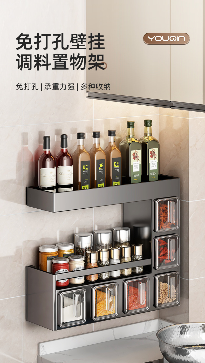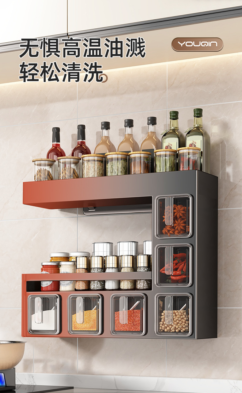 優勤調味料箱棚壁掛けセットキッチン調味料瓶収納棚家庭用塩缶調味料缶
