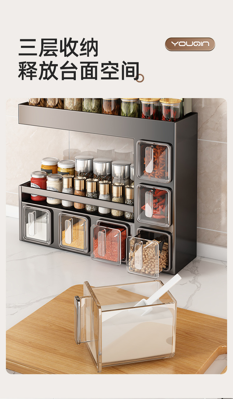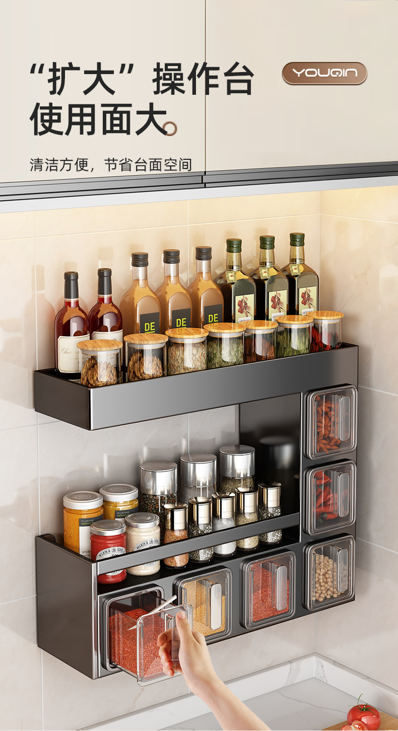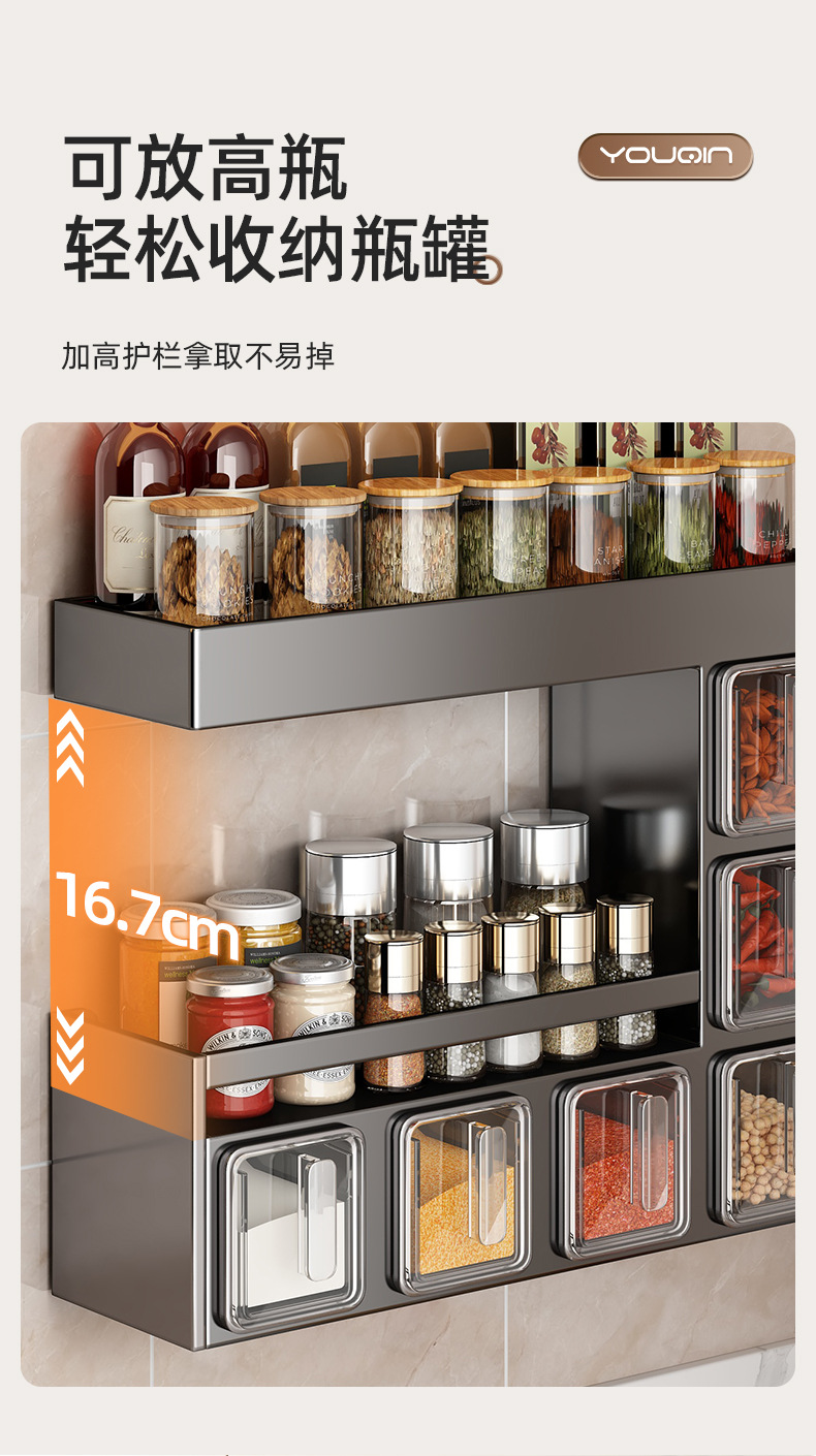 優勤調味料箱棚壁掛けセットキッチン調味料瓶収納棚家庭用塩缶調味料缶