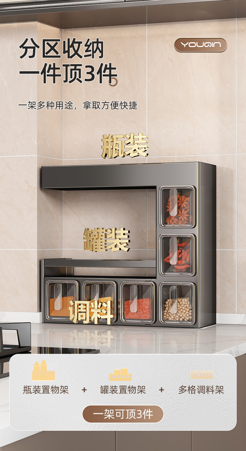 厨房调料架壁挂免打孔多功能收纳调味料品罐家用一整套升建批发