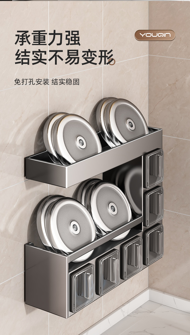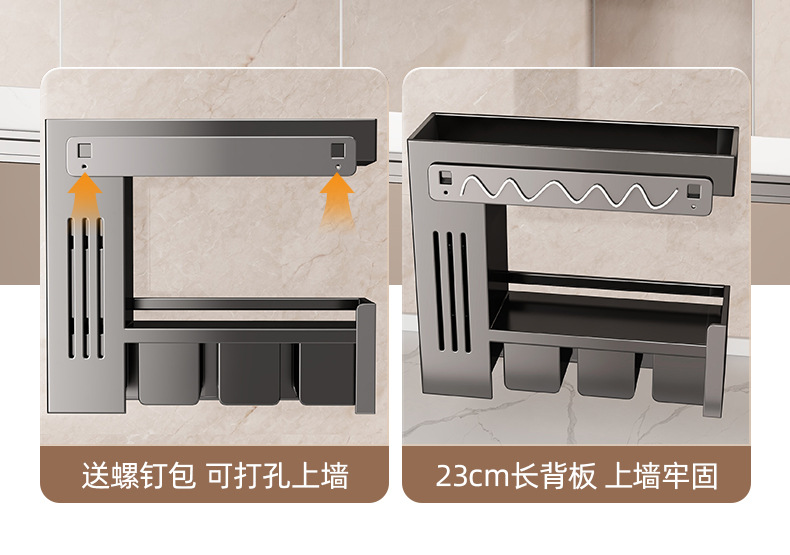 ガン灰吸盤キッチンラック穴なし調味料ラック壁掛け式ナイフラック箸籠まな板蓋ラック収納