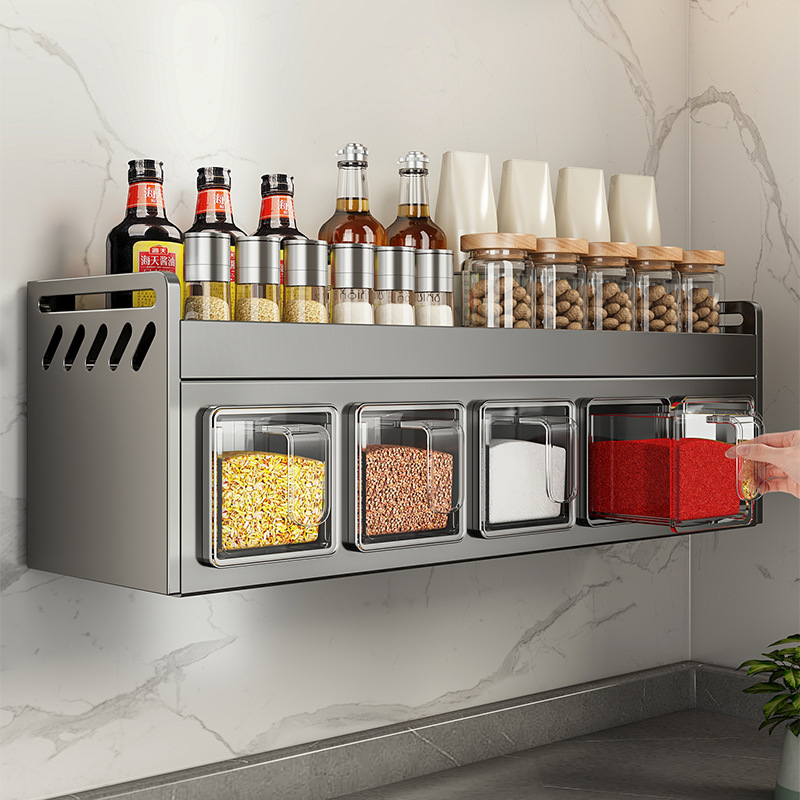キッチン調味料棚穴なし家庭用壁掛け多機能調味料セット調味料ケース缶収納