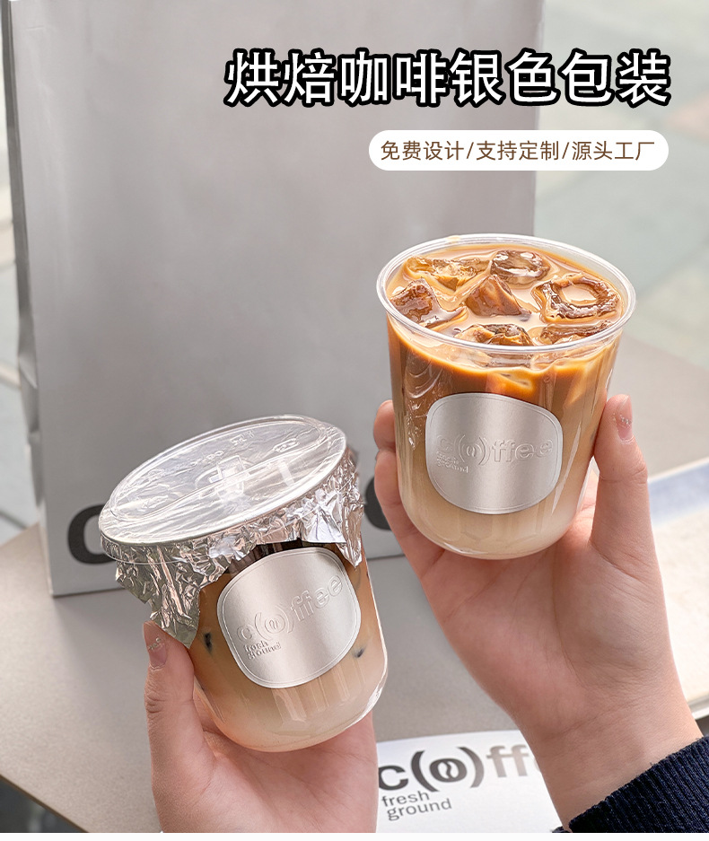 インターネット有名人の蓋付き使い捨てコーヒーカップ、商業用テイクアウト包装、ホットシルバー、高級ホットドリンクミルクティーペーパーカップ印刷