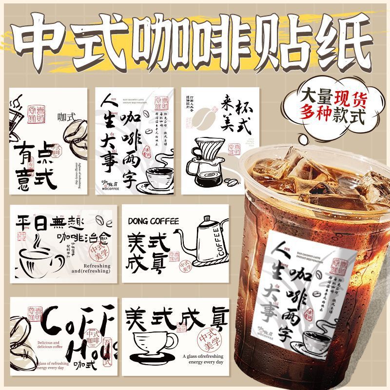 ネット赤コーヒーカップ不乾性国風テープ新中国式ミルクティーカップステッカー透明アメリカ式実現カップステッカー