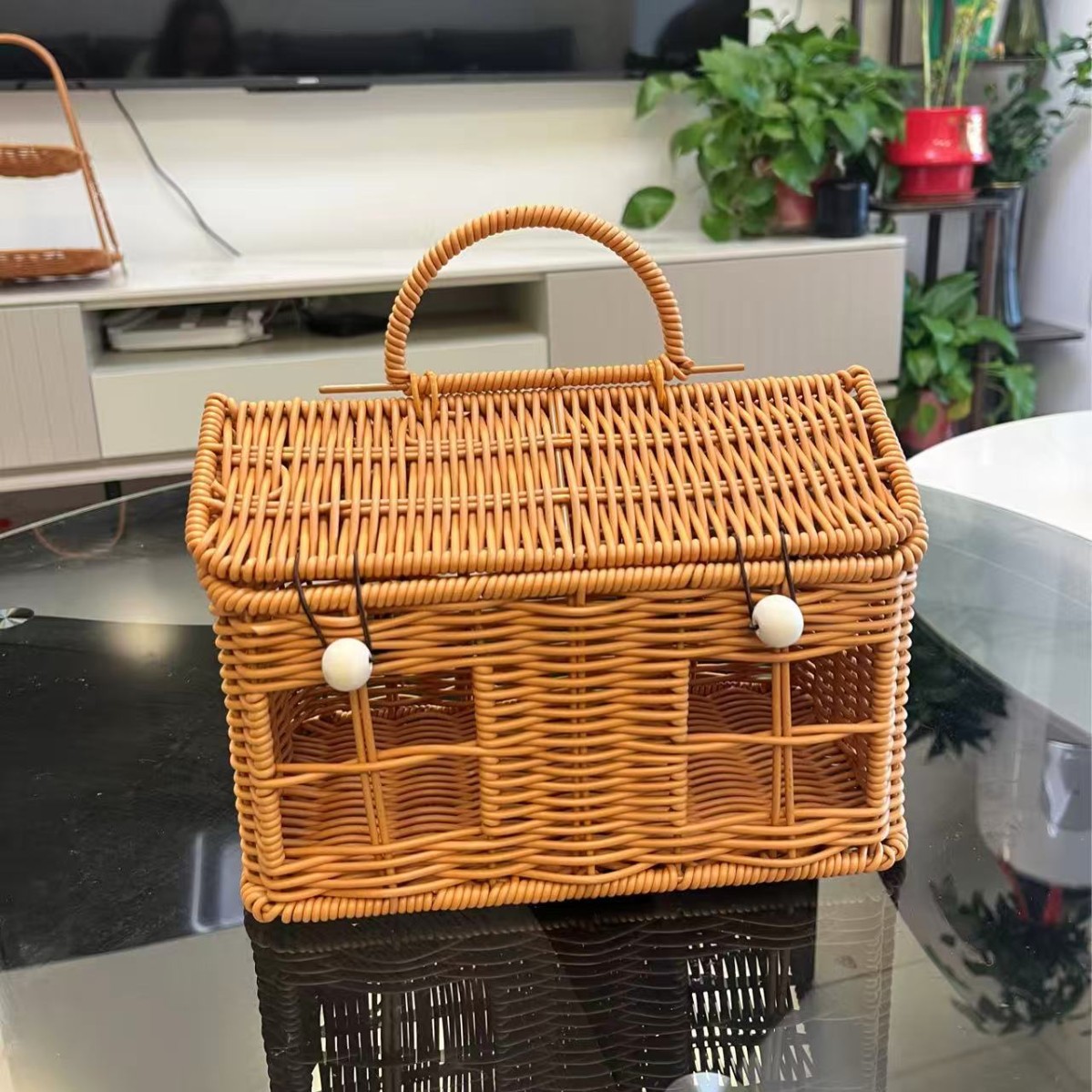 韓国ins手編み創意小家藤編ピクニック収納バスケット