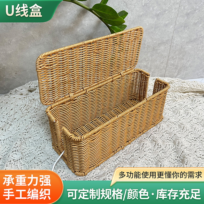 仿藤编织电视柜插线板收纳盒田园风桌面电源理线盒桌面电缆管理盒