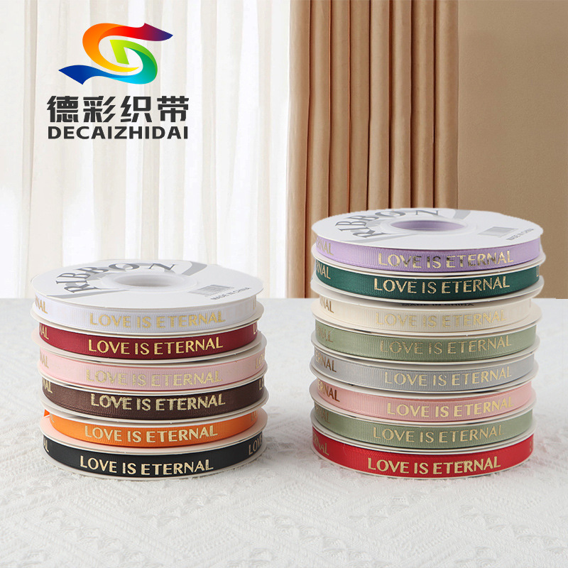 徳彩メーカー卸売り箔押し1cmねじ英語アルファベットリボン花ギフトケーキ包装リボン