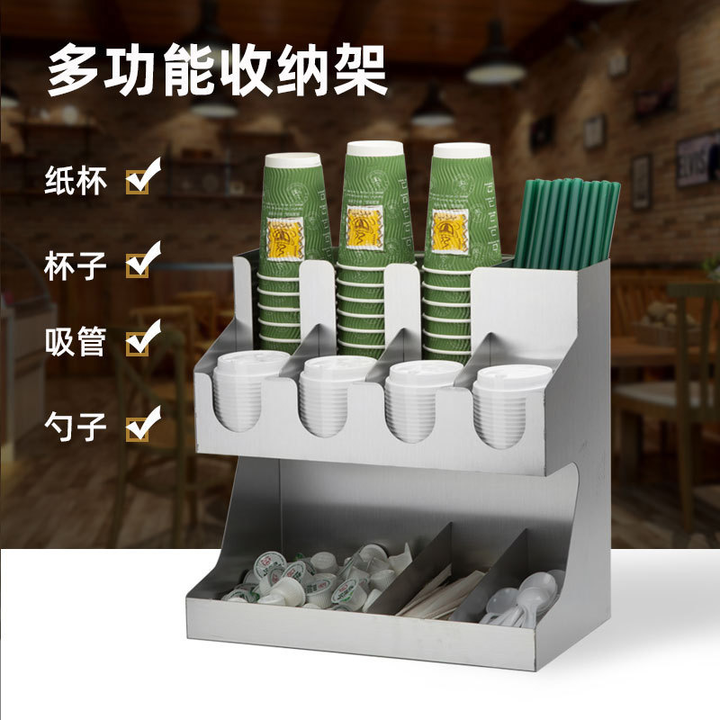 ステンレス紙コップ棚コーヒーバーミルクティー店ストローティッシュ収納棚多機能収納棚商用