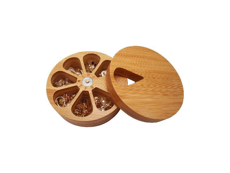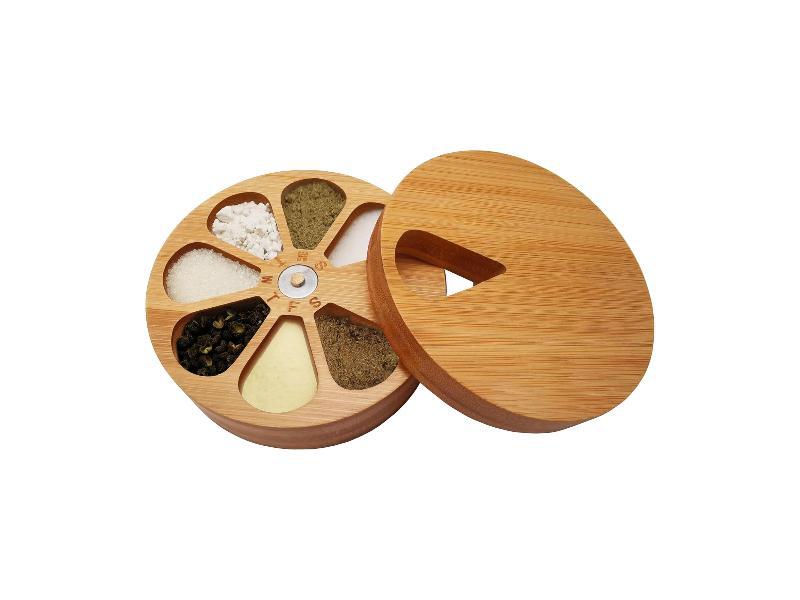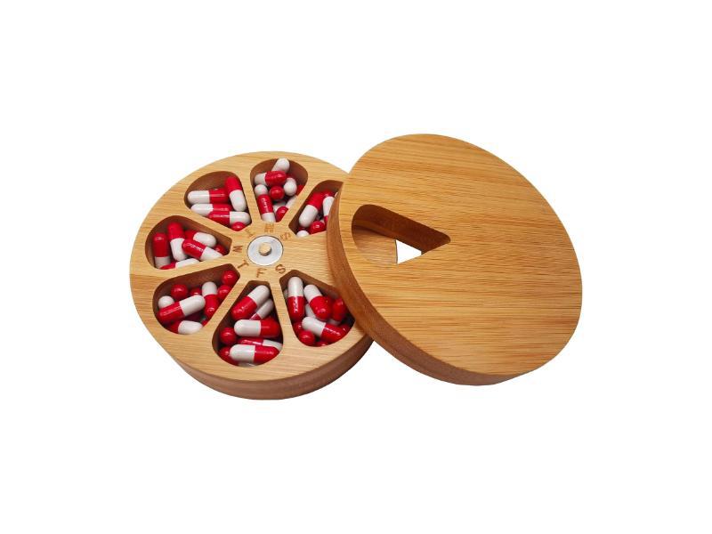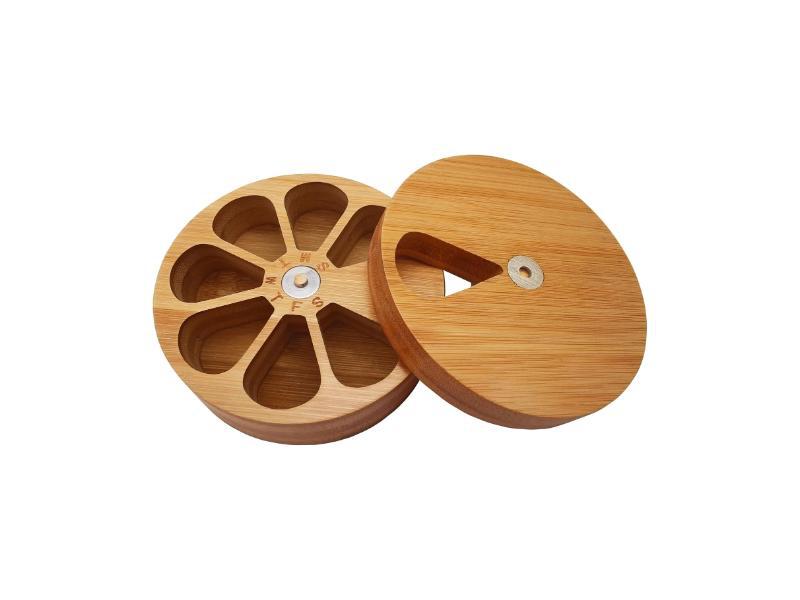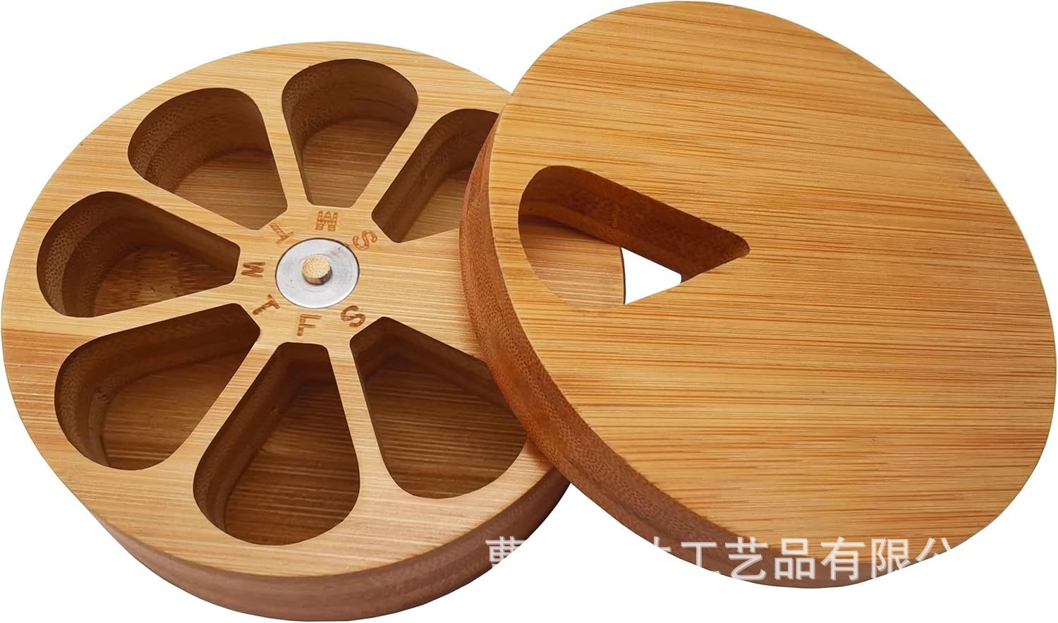 木製円形7格1週間丸薬カプセルビタミン収納ボックス回転可能磁気吸引ボックス調味料木ボックス
