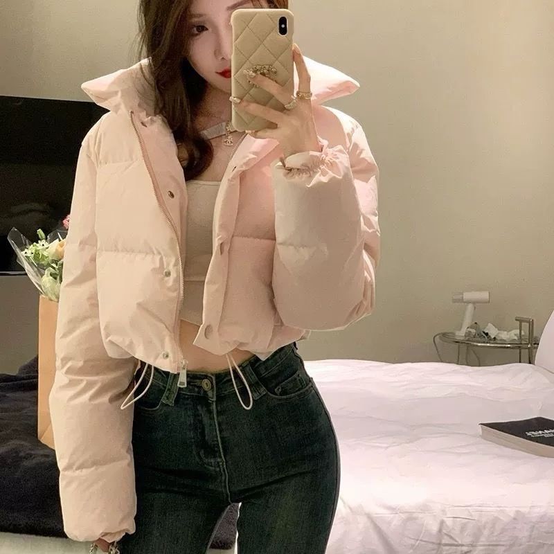 2024冬の新型韓国版ダウン綿服女性の短い立襟の小さい背はファッションコートのパン服のファッションを厚くします。