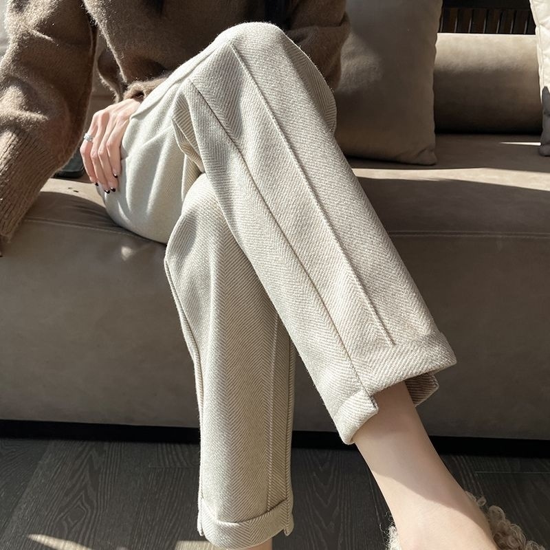 毛はまっすぐな筒のズボンの女性の秋冬は高腰のゆったりしていて、やせています。