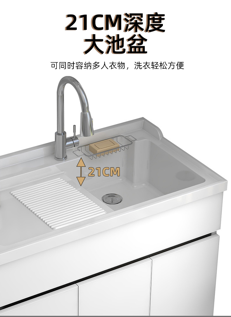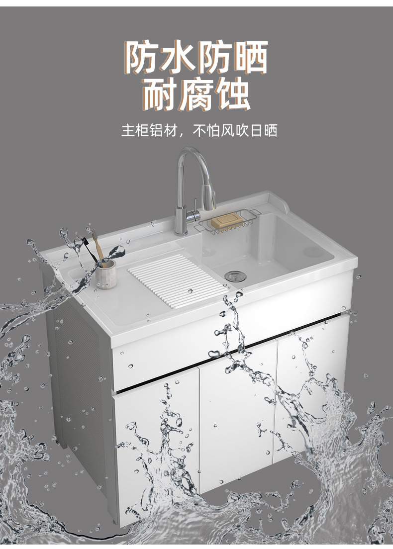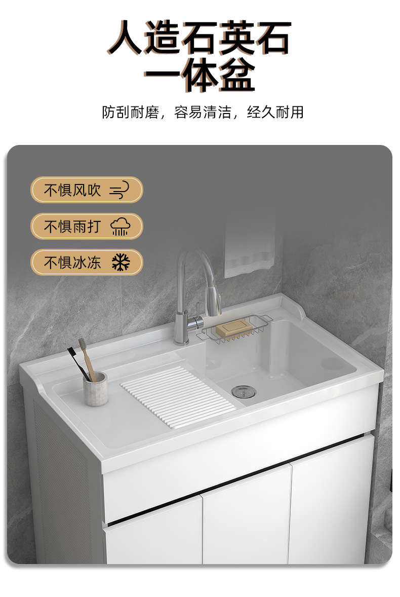 不锈钢蜂窝铝洗衣柜一体台盆洗衣池槽柜组合带搓板落地柜洗