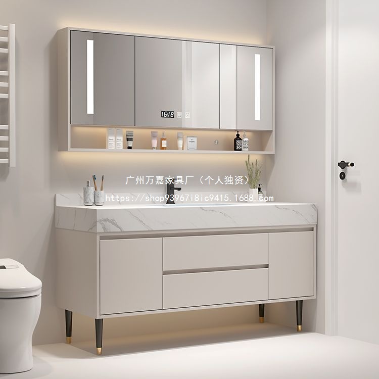 奶油浴室柜组合岩板无缝一体洗脸盆落地洗手盆卫生间洗手洗漱双盆