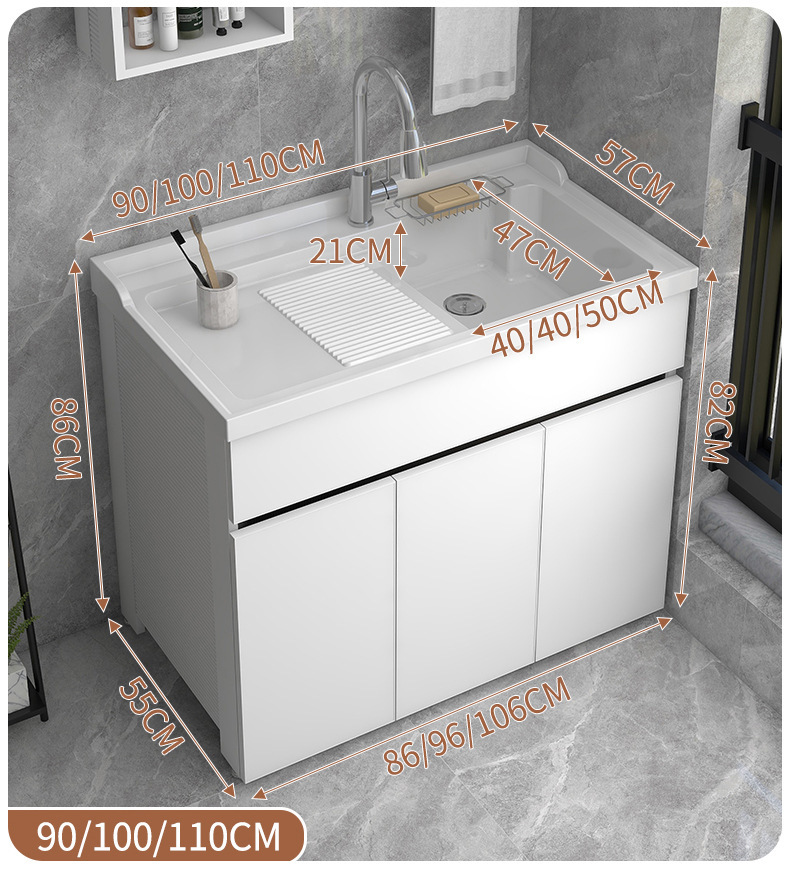 Kxh洗濯池ベランダ家庭用ハニカムアルミ手洗い台盆キャビネットセット一体セラミック洗濯槽洗濯盆ベルト