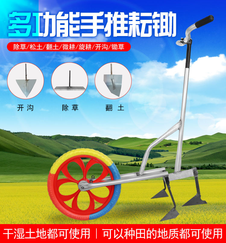 手押し鍬手押し式草刈り神器多機能手押し溝開け機農業用草取り機耕地草刈り松土