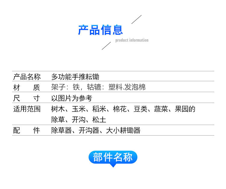 手押し鍬手押し式草刈神器土返しすき農業用溝開け器手動松土機多機能微耕機