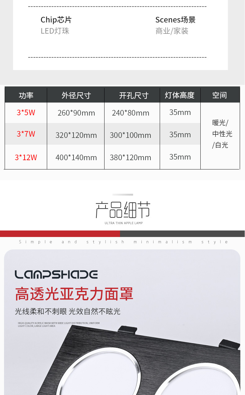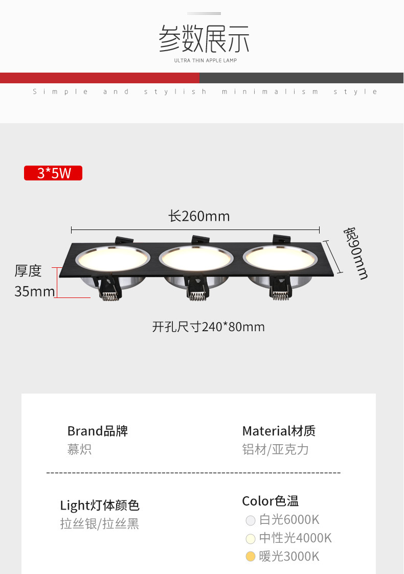 光源の電力 ブラックシェル-3X5W-開口部240*80mm,ブラックシェル-3X7W-開口部300*100mm,ブラックシェル-3X12W-開口部380*120mm,シルバーシェル-3X5W-開口部240*80mm,シルバーシェル-3X7W-開口部300*100mm,シルバーシェル-3X12W-開口部380*120mm